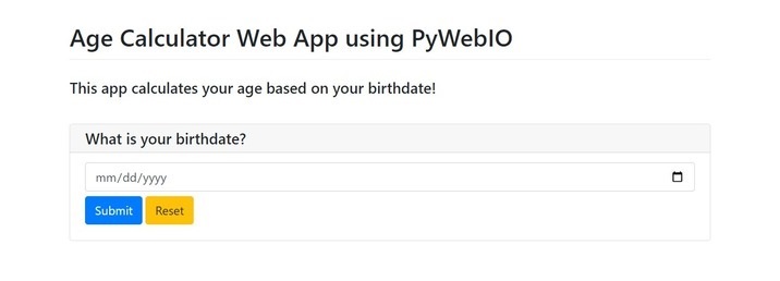 希望練習 Python 技能並學習如何開發小型 Web 應用的使用者,可以使用 Python 中的 **PyWebIO** 快速有趣地建立一個年齡計算器 Web 應用。Python 庫 **PyWebIO** 使構建互動式線上應用變得簡單。此專案中的線上年齡計算器使用 **PyWebIO** 根據使用者的出生日期計算使用者的年齡。