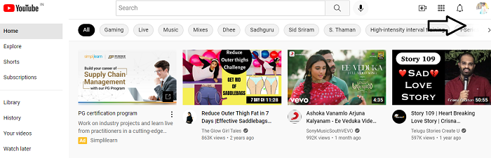 **步驟 1** − 訪問https://www.youtube.com。如果您已登入,則跳到下一步。否則,現在是登入您帳戶的時候了。