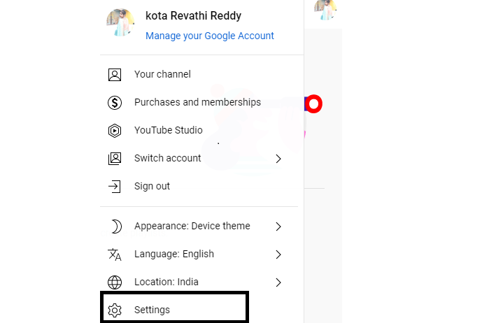 **步驟 3** − 點選個人資料圖示後,將開啟一個下拉框。從下拉選單中選擇**設定**。
