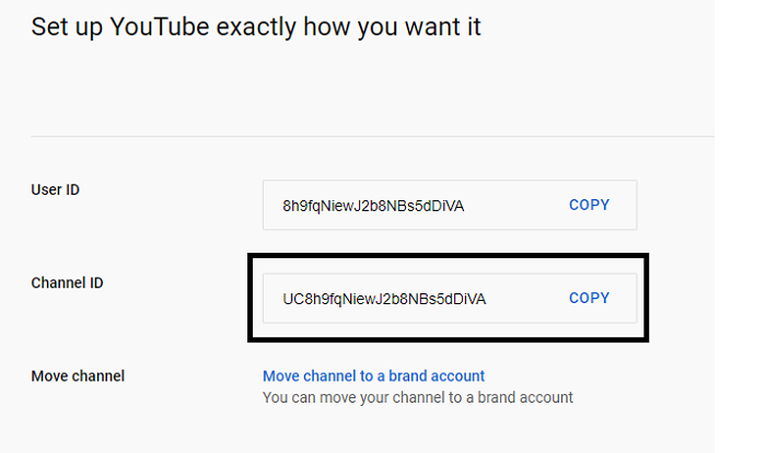 **步驟 5** − 在高階設定頁面中,複製頻道 ID。
