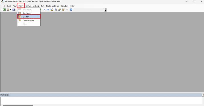 按ALT + F11鍵開啟VBE視窗,單擊“插入”選項卡,然後選擇“模組”選項,如下所示:
