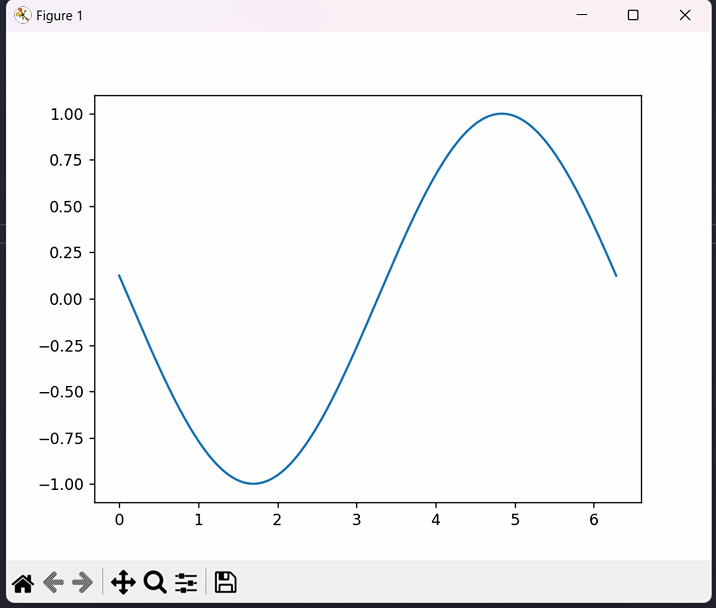 在這個例子中,我們使用“subplots()”函式建立了一個圖形物件“fig”和一個“an”座標軸物件 ax。接下來,我們建立了一個包含 0 到 2π 之間 200 個點的 numpy 陣列“x”,以及一個繪製“x”正弦值的線物件“line”。