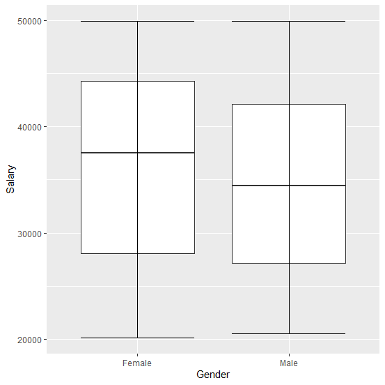 library(ggplot2) ggplot(df,aes(Gender,Salary))+geom_boxplot()