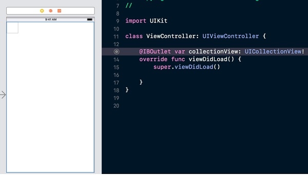 步驟 5 - 在 ViewController.swift 中建立 collection view 的 @IBOutlet。