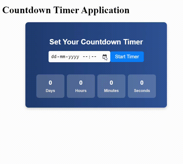 上面提到的倒計時器程式碼的輸出如下所示。請注意,輸出以 gif 格式新增。從輸出視窗中選擇您首選的日期和時間,然後單擊“啟動計時器”按鈕以啟動倒計時器。
