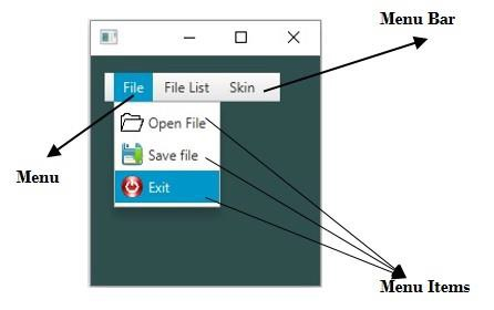 在 JavaFX 中,選單由 javafx.scene.control.Menu 類表示,選單項由 javafx.scene.control.MenuItem 類表示,而 javafx.scene.control.MenuBar 類表示選單欄。要建立選單 -