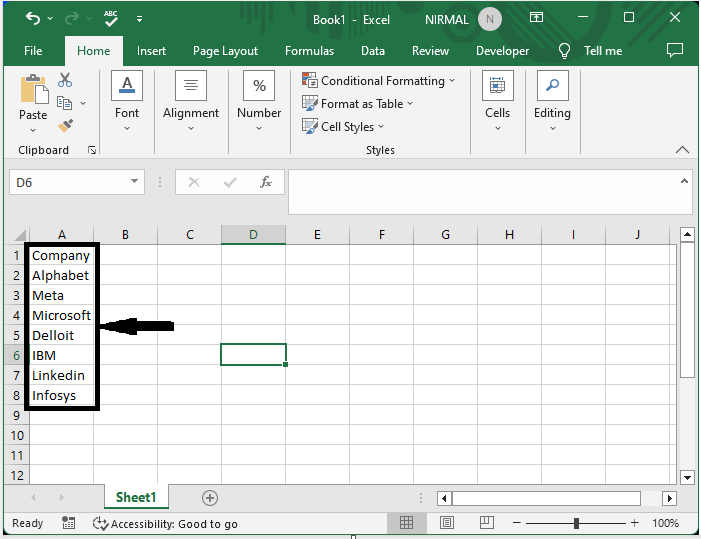 考慮一個 Excel 表格,其中您有一個類似於下圖的姓名列表。