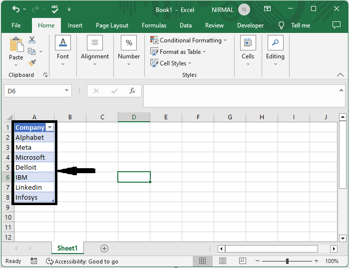在本教程中,我們使用了一個簡單的示例來演示如何在 Excel 中建立動態資料驗證並自動擴充套件下拉選單,以突出顯示特定資料集。