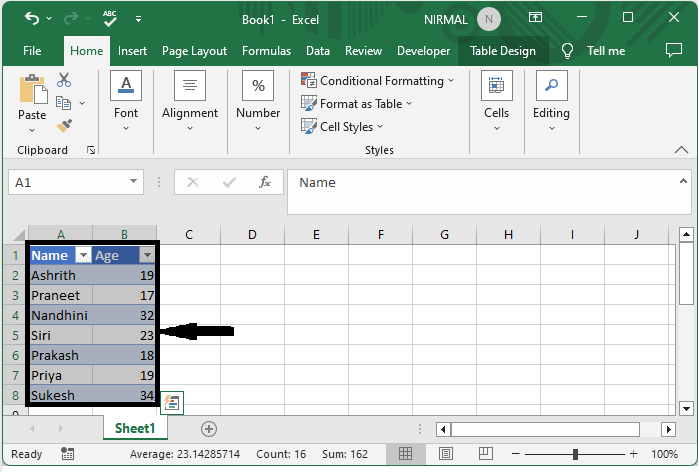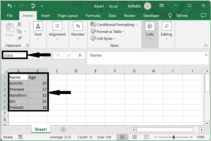 在這裡,我們將首先命名現有資料,然後為其建立一個表格以完成我們的任務。因此,讓我們看看一個簡單的過程來學習如何在Excel中建立動態命名區域。