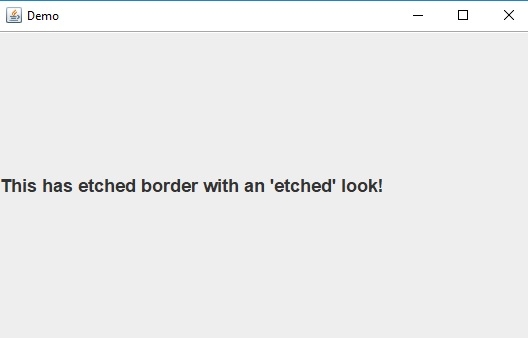 label = new JLabel("This has etched border with an 'etched' look!");讓我們使用 BorderFactory 類建立蝕刻邊框 −