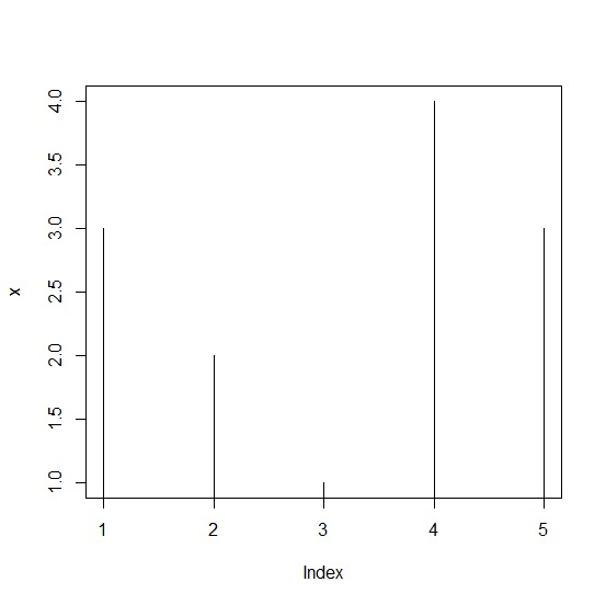 x<-rpois(5,2) plot(x,type="h")