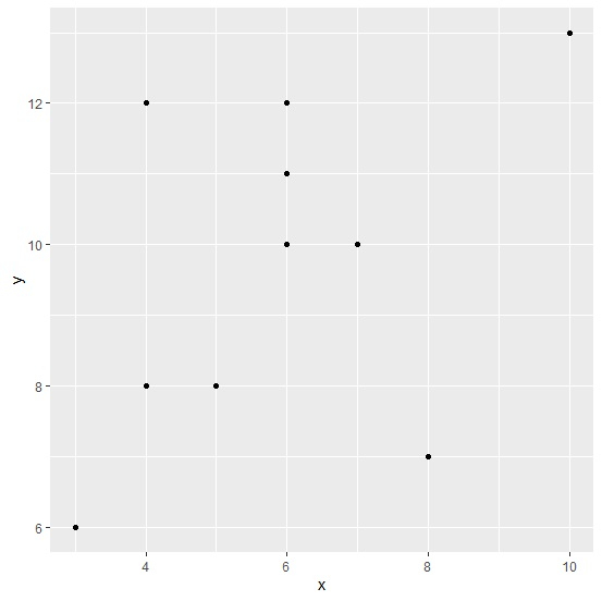library(ggplot2) ggplot(df,aes(x,y))+geom_point()
