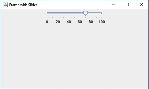 slider.setMinorTickSpacing(5); slider.setMajorTickSpacing(20); slider.setPaintTicks(true); slider.setPaintLabels(true); Add the slider in the panel: JPanel panel = new JPanel(); panel.add(slider);