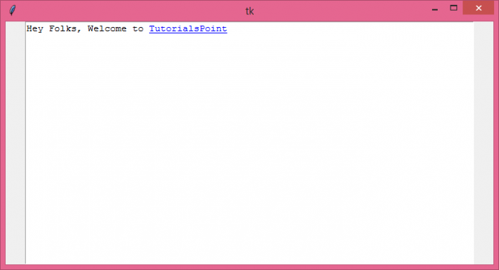 Tkinter Text 小元件通常用於在給定的文字文件中接受多行使用者輸入。對於特定的文字文件,內容可能還包含超連結,這在我們需要重定向使用者的情況下非常有用。你可以使用 Python 中的 **HyperLinkManager** 程式碼片段在文字文件中建立超連結。
