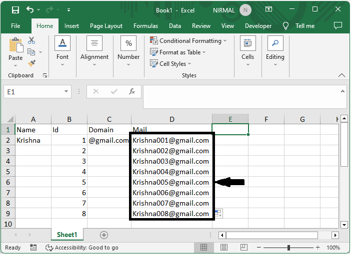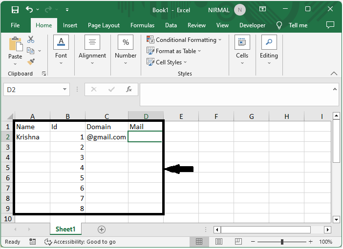 這裡我們將使用公式獲取第一個值,然後使用自動填充柄完成任務。讓我們看看一個簡單的過程,瞭解如何在 Excel 中建立帶文字或包含文字的遞增數字。