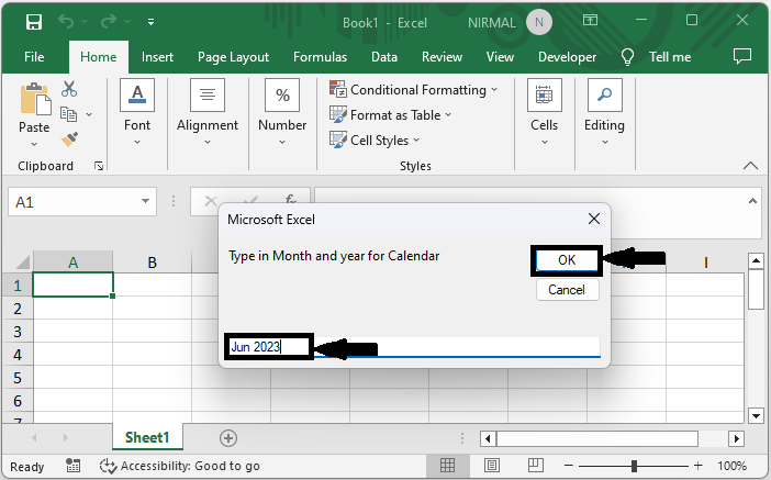 然後單擊F5執行模組,指定月份和年份,然後單擊“確定”以完成任務。