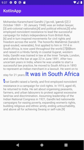 此示例演示瞭如何在 Android 中使用 Kotlin 建立分頁文字。