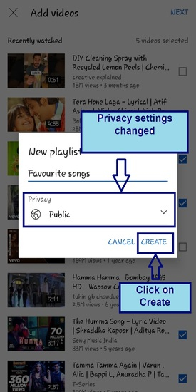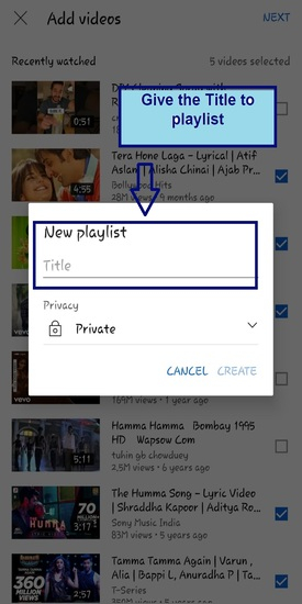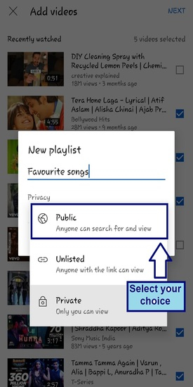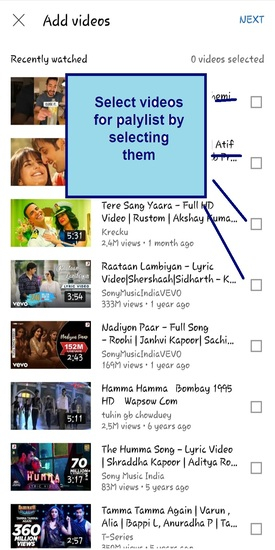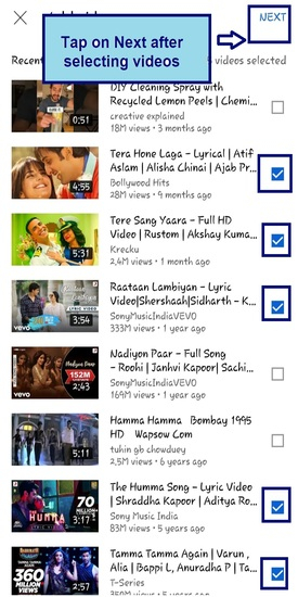 選擇要新增的影片。您可以選擇任意數量的影片新增到播放列表中。然後,點選“下一步”。