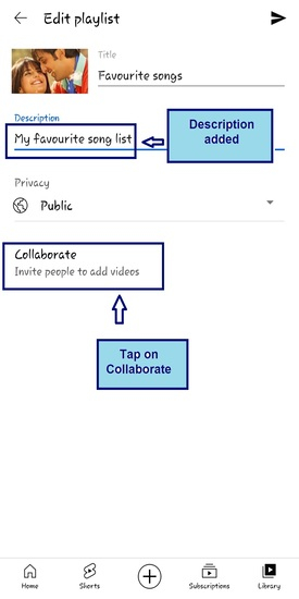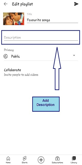 點選“描述”並新增描述以描述您的播放列表。這是您播放列表的簡短介紹。