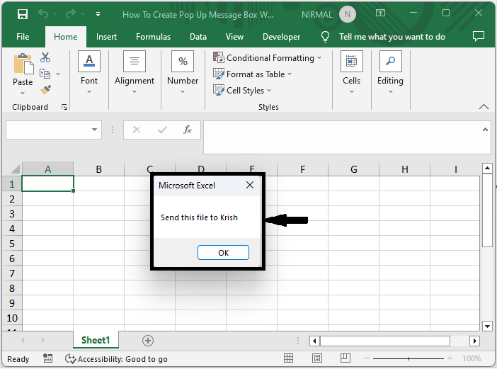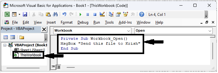 Private Sub Workbook_Open() MsgBox "Send this file to Krish" End Sub