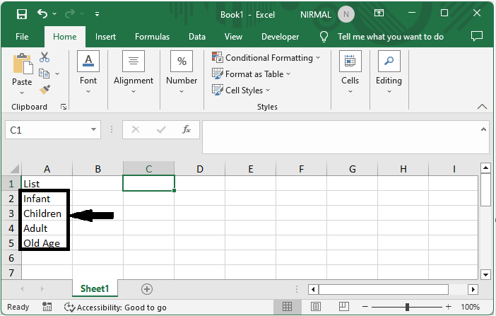 假設您有一個 Excel 工作表,其中包含一個名稱列表,如下面的螢幕截圖所示。