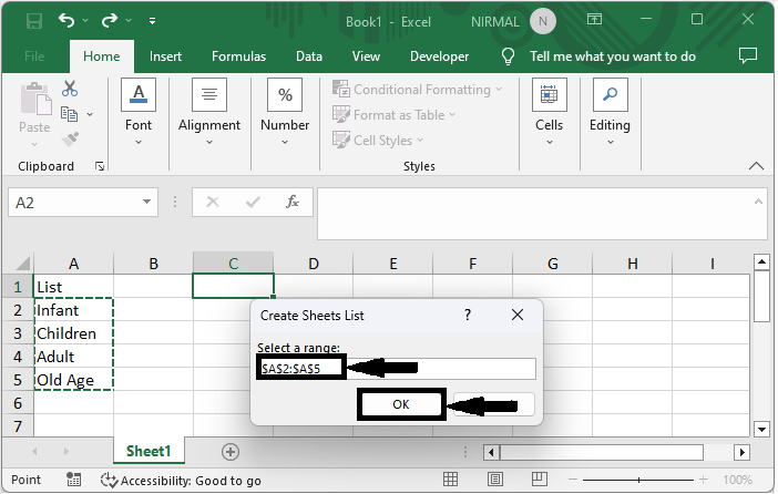 這裡,我們將首先建立一個 VBA 模組,然後選擇單元格範圍以完成任務。因此,讓我們來看一個簡單的過程,學習如何在 Excel 中從列表建立工作表名稱。