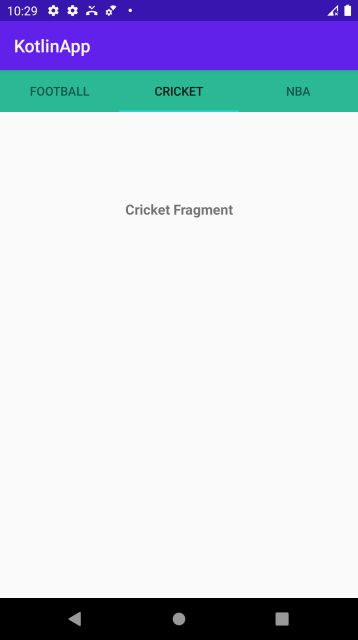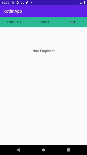 }步驟5 − 建立3個Fragment活動(板球、足球、NBA - 你可以自己命名)和以下程式碼−