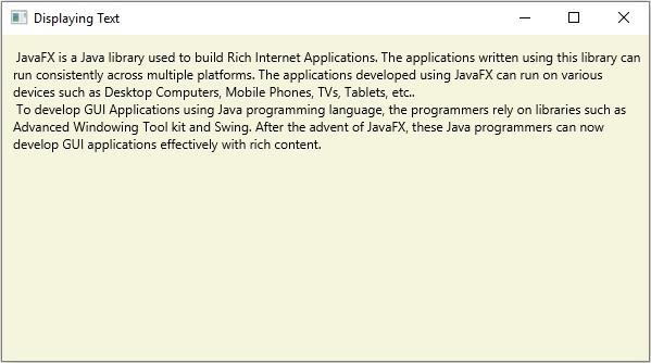 text − 此屬性表示要在 JavaFX 視窗上顯示的文字。你可以使用 setText() 方法為此屬性設定值。
