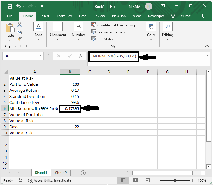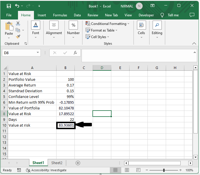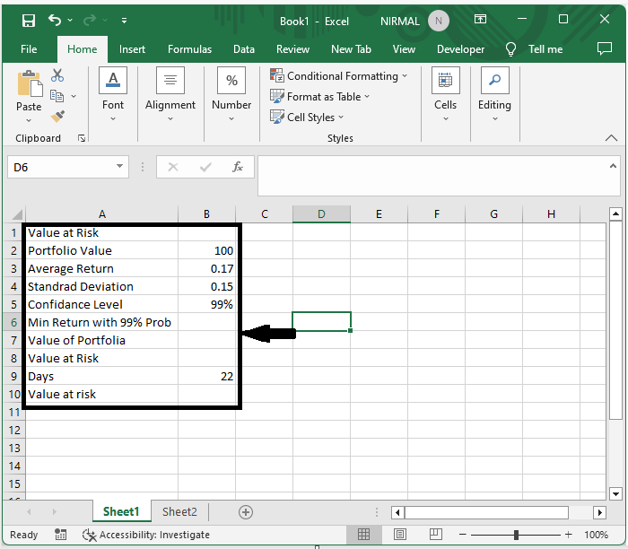 在這裡,我們將首先計算風險價值,然後建立一個模板來完成我們的任務。讓我們來看一個簡單的過程,瞭解如何在Excel中建立風險價值模板。