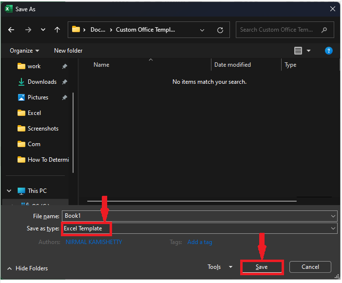 然後,要將工作表另存為模板,請單擊“檔案”,“另存為”,“瀏覽”,將型別設定為“Excel 模板”,然後單擊“確定”以完成任務。