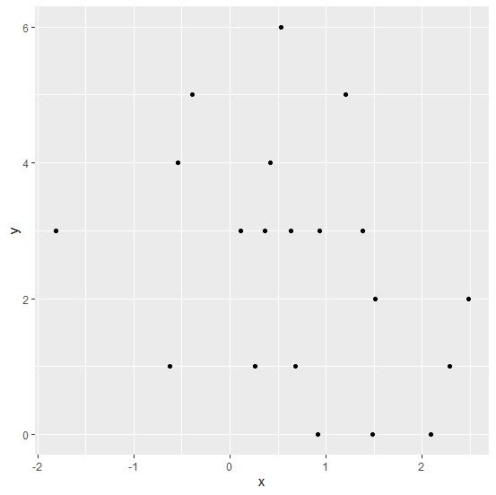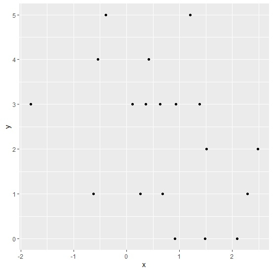 > set.seed(2) > x<-rnorm(20,0.5) > y<-rpois(20,2) > df<-data.frame(x,y)