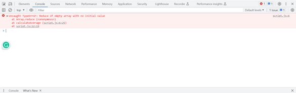 發生異常時,瀏覽器的開發者控制檯會顯示堆疊跟蹤。它揭示了導致錯誤的函式呼叫序列。在此示例中,堆疊跟蹤將突出顯示錯誤中涉及的行號和函式,從而使開發人員能夠識別根本原因。