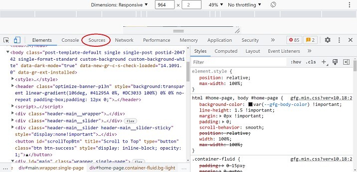 在瀏覽器視窗中開啟檢查元素或開發者工具,它看起來如下面的圖片所示:
