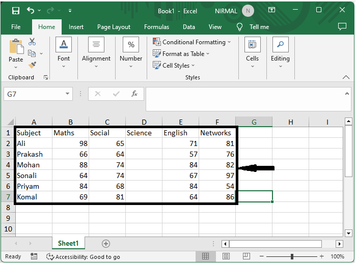 考慮一個 Excel 工作表,其中您以表格格式儲存資料,並且至少有一列為空,類似於下圖所示。
