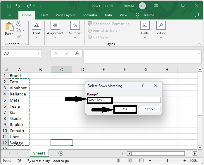 在本教程中,我們使用了一個簡單的示例來演示如何刪除另一個工作表上不符合條件的行,以突出顯示特定資料集。