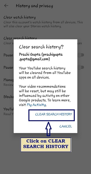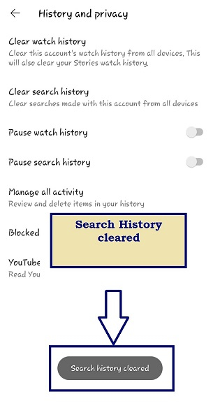 YouTube 擁有一個演算法,該演算法在使用者在 YouTube 上進行的每次搜尋背後執行。它會記住使用者的搜尋內容,並根據它建議其他搜尋和影片供稿。所有這些都保留在 YouTube 演算法的記憶體中以及您的裝置中,無論是筆記型電腦、桌上型電腦、平板電腦還是手機。在同一 ID 下登入的所有裝置中的歷史記錄都相同。為了維護隱私,Google 允許其觀看者隨時刪除觀看歷史記錄。觀看者可以刪除特定搜尋主題或一次性刪除所有搜尋專案。還有一些選項可以自動刪除或暫停您的歷史記錄。