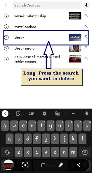 按照以下步驟逐步清除使用 YouTube 應用的 YouTube 單個搜尋歷史記錄。