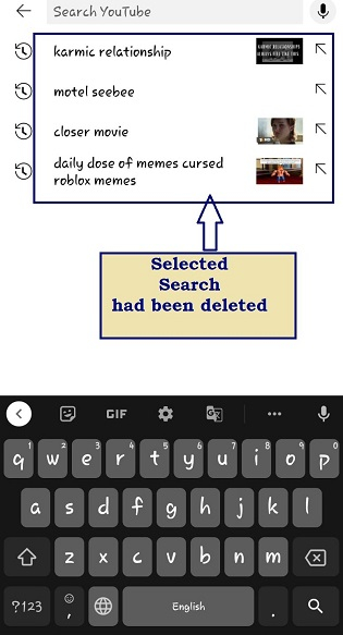 有時使用者不想刪除整個搜尋歷史記錄,以便保留常用搜索列表,以避免一遍又一遍地輸入。觀看者希望刪除單個搜尋。YouTube 允許使用者刪除單個搜尋。
