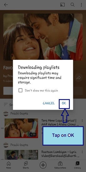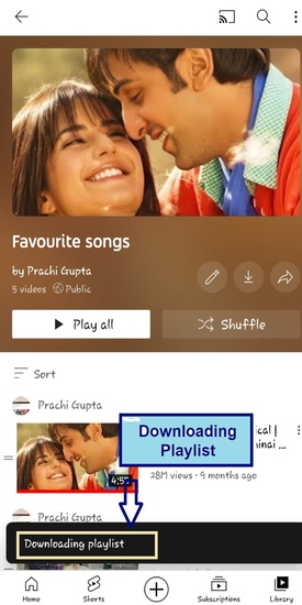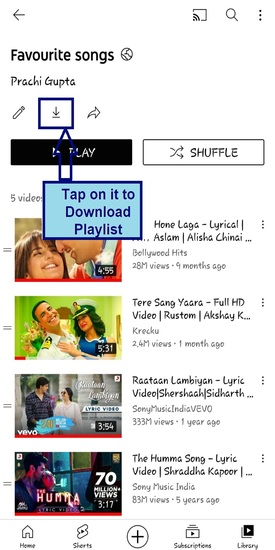 透過點選庫部分中的播放列表來開啟它。如果您點選如下所示的按鈕,則可以開始下載。