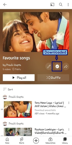 下載完成後,您可以在播放列表上看到勾選符號。