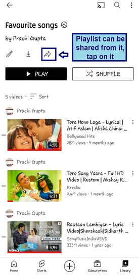 點選分享按鈕,將您的播放列表分享給您的朋友和家人。如果您的隱私設定選擇為“公開”,則您的朋友和家人可以新增或刪除歌曲。