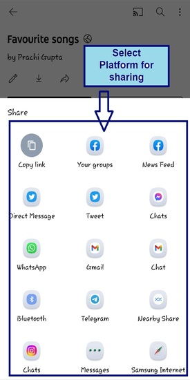 選擇您將透過哪個平臺分享播放列表。