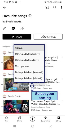 排序播放列表
