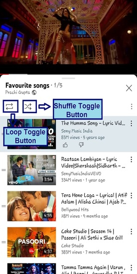 如您在下面的影像中看到的,在播放列表執行時可以啟用迴圈和隨機播放按鈕。隨機播放表示自動排列所有影片的播放順序。自動播放迴圈表示自動一遍又一遍地播放所有影片。