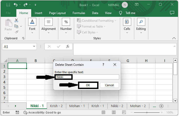 然後單擊 F5 執行模組,輸入要刪除的文字,然後單擊“確定”以完成任務。