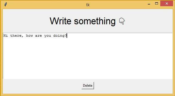 執行以上程式碼將建立一個文字小元件和一個刪除按鈕,該按鈕可用於刪除文字框中編寫的內容。