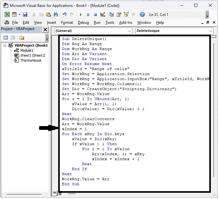 Sub DeleteUnique()