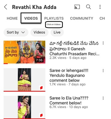 步驟 3 - 您將被帶到您頻道的首頁。點選“影片”部分。