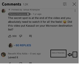 步驟 6 - 選擇影片後,轉到評論部分,選擇要刪除的評論,然後點選三個點(如下所示)。