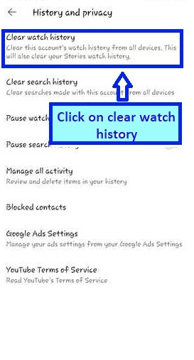 在下一個螢幕上,選擇“清除觀看歷史記錄”。